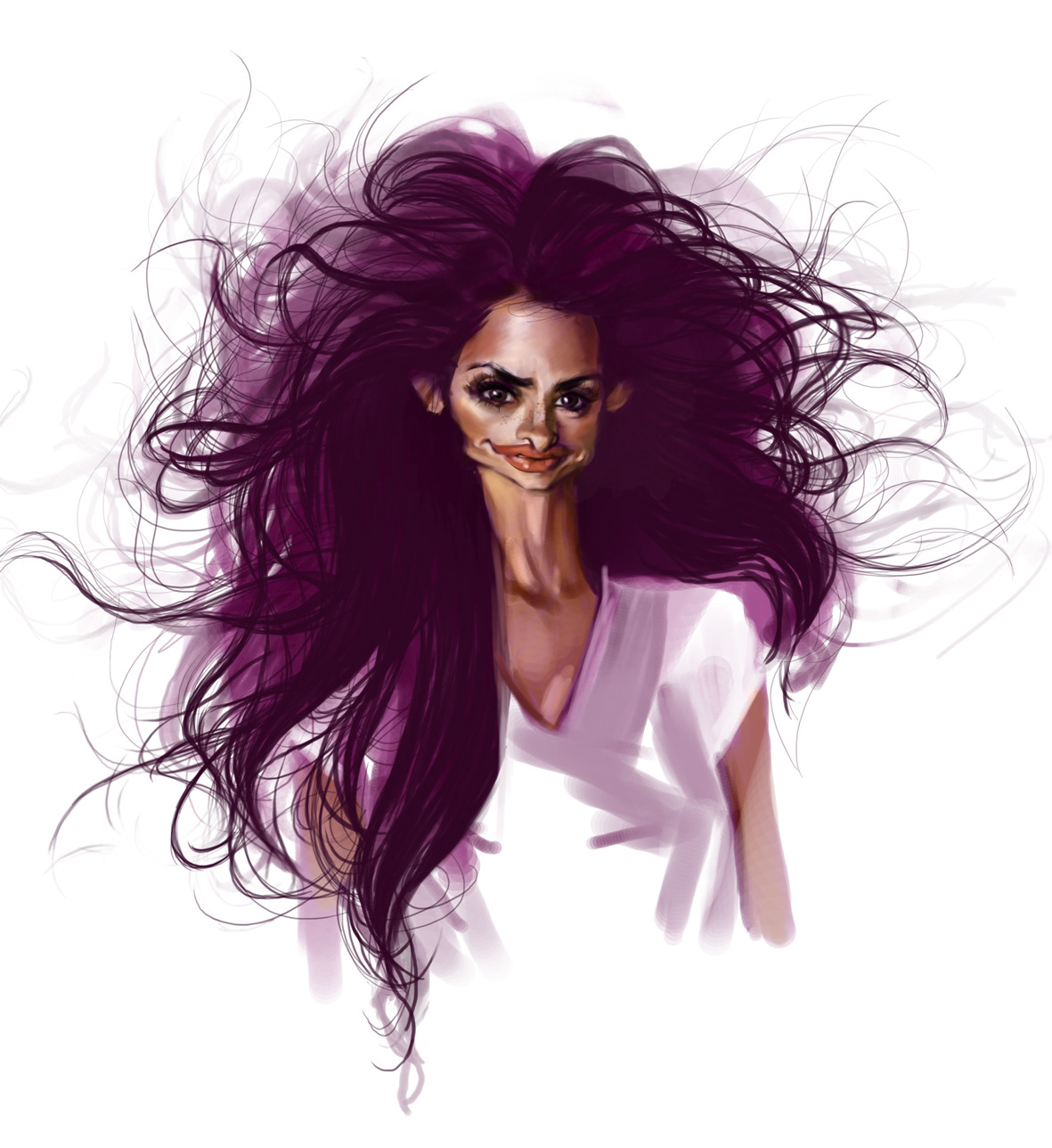 Every week I try to participate in an online challenge to push myself. This week the theme was Penelope Cruz. There were some really great entries. My goal was to show how small I see her head in comparison to her body. It was tough as although I do see her head as quite small, she herself is quite tiny. Sometimes the best thing to do is draw from a distance in a really tiny window to get a feel for your subject first.